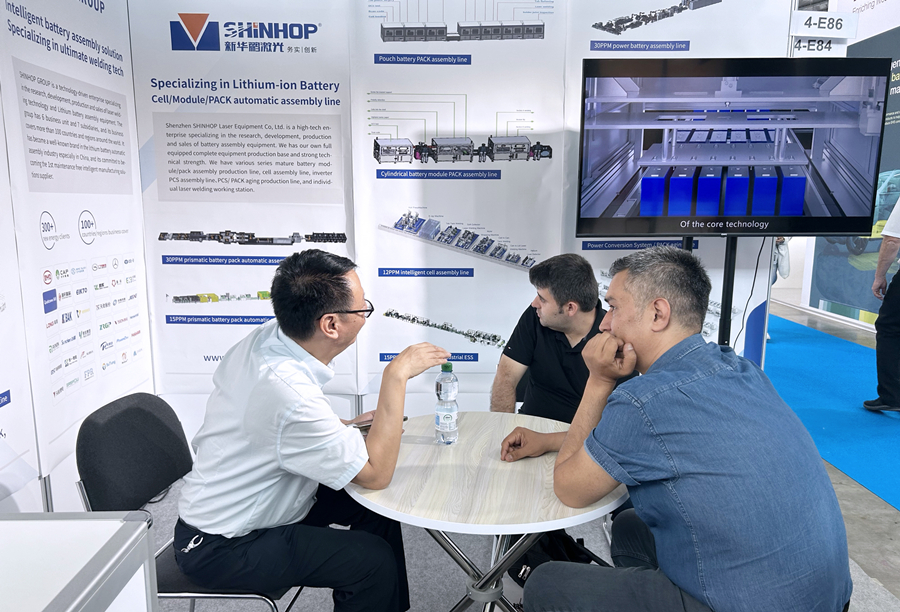 歐洲本土最大的新能源電池科技展(The Battery Show Europe)在德國·斯圖加特會展中心盛大啟幕,新華鵬作為全球自動化鋰電池電芯裝配線PACK生產線知名品牌,攜旗下子公司閃耀亮相4-E86展位。展品涵蓋:模組PACK線、儲能電池PACK線、動力電池PACK線、電芯裝配線、逆變器PCS裝配線、PCS/PACK自動老化線、4680圓柱電池全自動裝配線、智能鋰電MES系統、智能物流立庫、智慧儲能柜等新能源整線解決方案,向全球客戶展示“中國創造”。