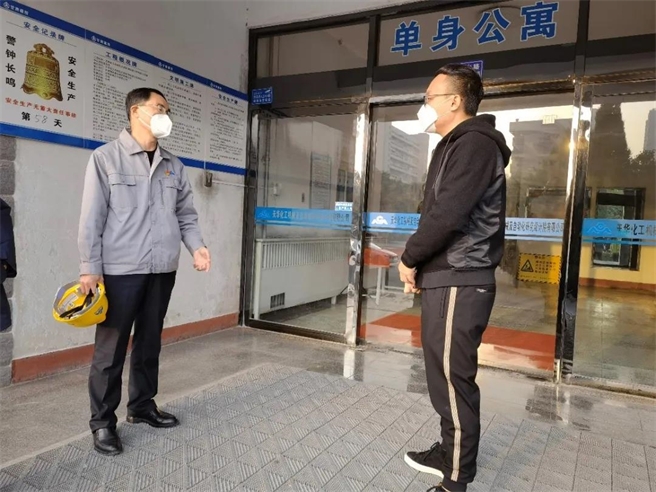 圖為裝備公司天華院紀檢干部深入公司單身公寓檢查防疫措施落實情況
