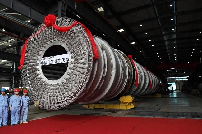 9月20日,由天華化工機械及自動化研究設計院自主研發、設計、制造的世界最大的“400萬噸PTA蒸汽管干燥機組”下線,填補了該領域國內大型裝置關鍵設備的空白,達到世界先進水平。