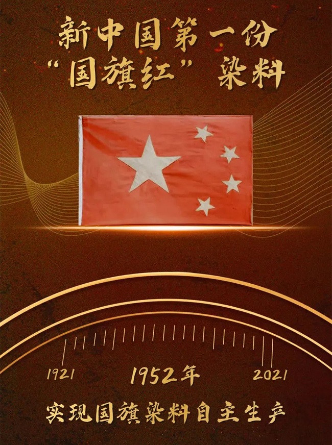 7月,東北化工局研究室8項染料及中間體在試驗室首次研究成功,即苯胺、苯酚、2-萘酚、色酚AS、安安藍RT、猩紅G色基、甲苯胺紅和硫化靛藍。基于猩紅G色基研究,研究室于1952年生產出合格染料,并被國家選定為國旗專用染料。