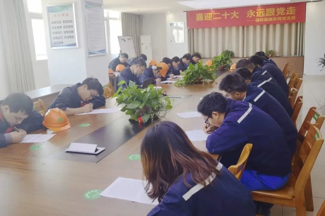 黨委發揮示范帶動作用,領導帶頭學,帶頭講。10月16日上午,公司各級黨委領導班子以及黨員干部職工和青年代表近千人收看黨的二十大開幕盛況。公司黨委先后召開黨委擴大會議、理論學習中心組擴大會議,深入學習、專題研討黨的二十大精神內涵。公司黨委書記、專職副書記到達企業集中開展基層宣講活動并對企業黨建、生產經營、安全環保等重點工作開展實地調研。公司紀委召開專題研討會,凝聚全面從嚴治黨信心決心。