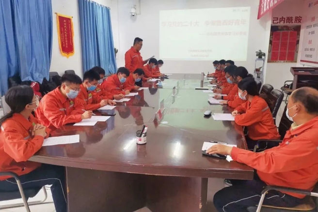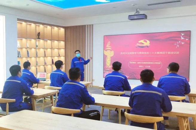 滄州大化集團公司團委書記積極深入一線組織召開團干部培訓班、團干部研討會,通過團委書記主講、團干部深入研討等方式,強化團干部對黨的二十大精神核心要義的深刻領會和全面把握,做好學習宣貫黨的二十大精神的表率。滄州大化集團公司團委還組織開展團員青年讀書會,從黨的奮斗歷程中汲取前進力量。