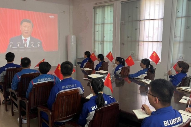 藍星公司黨委第一時間召開黨委會議及黨委理論學習中心組集中學習研討,認真傳達學習黨的二十大精神,并就下一步學習宣傳貫徹工作作出安排部署,要求公司全體干部職工把深入學習宣傳和貫徹落實黨的二十大精神作為當前和今后一個時期的首要政治任務,深刻領會精神實質,準確把握核心要義,推動黨中央決策部署更好轉化為生產經營的生動實踐。藍星公司中英文刊物開設“學習二十大 奮進新征程”系列專欄,向海內外企業傳達黨的二十大精神,號召青年黨員干部、基層先進典型等各級代表聯系工作實際暢談學習感悟,持續營造濃厚學習氛圍。公司各級黨組織通過黨委理論學習中心組、“三會一課”等形式組織黨員開展主題研討,集中精力完成好全年各項目標任務,認真思考謀劃下一階段藍星公司總體工作,全力推動黨的二十大各項重大部署落實落地,以更加昂揚奮進的姿態奮進新征程、建功新時代。