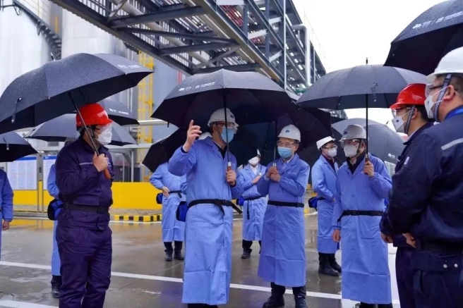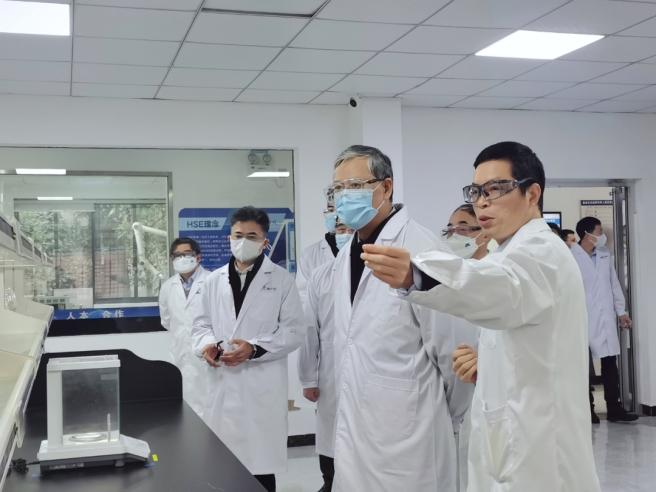 2月8-10日,李凡榮一行赴中化藍天調研,先后考察中化藍天上虞基地、浙化院、浙江新能源和中化藍天總部,深入生產車間、工程建設現場、重點實驗室、營銷中心等生產、研發和市場一線,了解生產運營、工藝技術、安全管理、研發創新、市場開發等情況,并看望慰問一線干部員工。