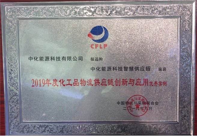 9月6日,在中國物流與采購聯合會主辦的“第七屆中國國際化工物流供應鏈峰會”上,中化能源科技公司獲頒“2019年度化工品物流供應鏈創新與應用優秀案例”獎。