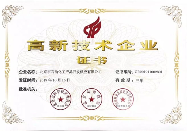 近日,石油銷售公司下屬北京市石油化工產品開發供應有限公司(簡稱北石化)通過“國家高新技術企業”認證,成為北京地區首家獲此認證的油品銷售企業。