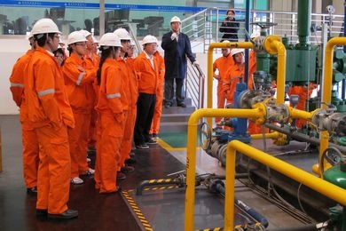 圖為新員工在采油樹旁觀摩。 9月10日,我司下屬中化石油勘探開發有限公司(簡稱“中化勘探開發公司”)在天津中海油渤海石油培訓中心展開了為期一周的專業培訓,這是公司青年員工培訓“啟航訓練營”第一期的一部分,2012級全體新員工24人參加了培訓。 此次培訓包含了勘探開發全程知識課堂講解、海上模擬采油平臺體驗培訓、模擬鉆井控制體驗培訓、團隊合作拓展等內容。課堂授課結合生動案例,分別從方法、技術、管理等多個層面分析展開,使新員工對與油氣相關的專業知識和技術有了全面深入的了解。 在模擬采油平臺上,大家圍著采油樹不住向講師提問,理論實踐相結合的培訓不僅鞏固了員工們所學的課堂理論知識,也對海上石油的鉆井、采油等環節有了更為直觀的認識。新員工紛紛表示,雖然專業細分不同,但此次系統連貫的培訓課程讓大家對石油勘探開發領域的開采、儲運、煉化等相關環節有了整體和全面的了解,對自身欠缺的部分和以后需要加強學習的方面有了更為明確方向。 勘探開發公司為新員工設置的“啟航訓練營”包含一系列有針對性和實用性的培訓內容。旨在落實“幫助員工成長”計劃,結合石油行業的特點,通過油田現場實踐、作業模擬培訓、團隊活動熔煉等系列培訓項目,提高青年員工對油田生產一線的認識,夯實基礎知識及技能,在業務領域更上一層樓。 |