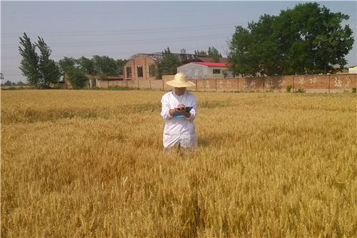 圖為中化化肥研究人員在田間作小麥指標調查