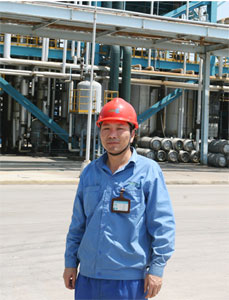 說起蘇興虎,人如其名,他可是中化近代環(huán)保化工(西安)有限公司(以下簡稱“西安環(huán)保化工”)的一員“虎將”,按照西安環(huán)保化工總工程師王軍的說法,蘇興虎“作風硬朗、敢打硬仗”,有他在生產(chǎn)線上讓人放心。 “猛虎”出山 蘇興虎的老家在陜西商州,地處秦嶺腹地,1988年他到商州化工廠學徒,而商州化工廠是當時西北幾省唯一一家做制冷劑的企業(yè),他也就成為整個西北地區(qū)最早一批接觸氟化工生產(chǎn)的工人之一。憑著一股肯吃苦的干勁,蘇興虎漸漸熟悉了與氟化氫打交道的各個環(huán)節(jié),掌握了過硬的技術(shù),多次被工廠評為先進工作者、廠級勞模,自己也當上了商州化工廠的車間主任。 ?。保梗梗纺?,西安環(huán)?;こ闪?,準備生產(chǎn)替代氟利昂的新型環(huán)保制冷劑HFC-134a,當時,在西安接觸過氟化工生產(chǎn)的工人少之又少,蘇興虎和其他幾個商州化工廠的工友便被西安環(huán)?;そ枵{(diào)了過來,參加200噸/年HFC-134a生產(chǎn)裝置的設(shè)備安裝,擔任生產(chǎn)部B班班組長。 ?。掳嘭撠熢O(shè)備管道的吹掃及試壓試漏工作,由于班組新工較多,又沒有氟化工操作經(jīng)驗,在生產(chǎn)過程中,蘇興虎不厭其煩地給大家講解、示范,一遍不行就再來一遍。進罐作業(yè)的時候,雖然工作環(huán)境艱苦、危險,但蘇興虎總是身先士卒,給班組的青工做出表率。1998年,B班被評為西安環(huán)?;は冗M班組,蘇興虎也因成績突出于2000年1月份被提升為生產(chǎn)部副經(jīng)理。 由于家在外地,蘇興虎平時就住在廠區(qū)的宿舍里。因為生產(chǎn)一線上就屬他技術(shù)最過硬,別人當班是8個小時,他成了24小時當班,日常生產(chǎn)、設(shè)備檢修、事故處理,有什么解決不了的事情大家都去找他。生產(chǎn)線上有他在讓人放心,可家里的事情根本就指望不上他。前幾年,HFC-134a的產(chǎn)量少,工作還沒有那么忙,蘇興虎抽空還能回商州老家看看。隨著西安環(huán)保化工二期5000噸/年裝置和三期5000噸/年裝置的安裝投產(chǎn),生產(chǎn)部的工作越來越多,一線也離不開蘇興虎這個挑大梁的人,現(xiàn)在他一個月也不一定回得了一趟家。 ?。玻埃埃衬甓谘b置試車時正值嚴冬,作為HFC-134a生產(chǎn)裝置的負責人,蘇興虎連續(xù)三個月沒回過家。父親住院了,他托弟弟幫忙照料;春節(jié)來臨,家人盼著他能回去過個團圓年,領(lǐng)導也讓他回去照料一下生病的父親,但是由于正值試生產(chǎn)階段,他仍堅持在生產(chǎn)一線,直到試車成功。三期試生產(chǎn)階段,由于系統(tǒng)運行不穩(wěn)定,他曾經(jīng)連續(xù)跟了九個班,解決現(xiàn)場出現(xiàn)的問題。領(lǐng)導讓他休息,他說:“現(xiàn)在試車是非常時期,請給我機會做一回‘非?!税?!”在他的帶動和大家的辛勤努力下,一組組數(shù)據(jù)出來了,合理的操作工藝制定出來了,三期試車也獲得圓滿成功。 搶險英雄 ?。龋疲茫保常矗崾且环N新型環(huán)保制冷劑,原料之一的氟化氫卻極其危險,每立方空氣的安全含量不應(yīng)超過1毫克。由于氟化氫的沸點只有19. 西安環(huán)?;さ模玻埃皣崳曛性囇b置和二期5000噸/年裝置都是國內(nèi)首套HFC-134a工業(yè)裝置,具有高壓、高溫、強腐蝕性特點,沒有成熟的生產(chǎn)經(jīng)驗可以借鑒,運行過程由于設(shè)備的問題難免會出現(xiàn)一些故障或意外,這就給工作人員提出了很高的要求。每次出現(xiàn)險情,蘇興虎總是以最快的速度沖到現(xiàn)場。在他擔任生產(chǎn)部副經(jīng)理以來,先后排除險情數(shù)次,其中令大家印象最深的是三期裝置回流罐泄漏事故。 2006年7月23日22時5分,隨著生產(chǎn)現(xiàn)場發(fā)出的一聲氣流聲,整個三期裝置四樓處于一片白霧之中,物料借風力會隨時對現(xiàn)場操作人員帶來傷害,處理稍有不慎,也會對控制室操作人員造成傷害。當時在宿舍休息的蘇興虎聽到氣流聲立刻跑了出來,當班班長報告情況的電話鈴聲響起時他已到達裝置控制室。他隨即指揮二期、三期裝置緊急停車,并將泄漏的初步情況向公司總值班經(jīng)理報告。在確認系統(tǒng)泄漏得到有效控制后,他帶領(lǐng)人員穿戴好安全防護用具實施搶險。 憑著對三期裝置各項設(shè)備和整個生產(chǎn)環(huán)節(jié)了然于胸的熟悉程度,蘇興虎克服風向不定、物料四處噴濺、現(xiàn)場充滿強烈刺激性氣體等困難,僅用十幾分鐘時間就徹底切斷了泄漏點,最終使泄漏事故在最短時間內(nèi)得到了正確而有效的控制,防止了泄漏事故的繼續(xù)蔓延。 提起去年的這次事故處理,大家無不被蘇興虎身先士卒的表現(xiàn)所折服,更對他的處理方案感到欽佩。正是因為他的沉著與果斷才將此次事故損失降到了最低點。但蘇興虎平靜地說,“出了事總要有人頂上去,我熟悉情況,我不上去別人怎么辦。” 平安是福 因為檢測設(shè)備靈敏度的原因,雖然西安環(huán)?;さ模龋疲茫保常矗釋崿F(xiàn)了自動化生產(chǎn)和計算機監(jiān)控,但要及時發(fā)現(xiàn)事故隱患,還是要依靠人工巡檢。每天,蘇興虎都要在二期裝置和三期裝置現(xiàn)場轉(zhuǎn)上兩趟,用眼睛去看,用鼻子去聞。今年6月份,他和生產(chǎn)部的王鋒經(jīng)理又想出一個好主意,鼓勵生產(chǎn)一線查缺堵漏,誰發(fā)現(xiàn)一處漏點就給予一定物質(zhì)獎勵,一個月下來,生產(chǎn)部巡檢了1487處