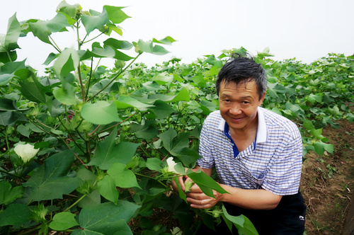 在洞庭湖畔一片碧綠的棉田中,或紅或白的花朵在茂盛的葉片遮蔽下躲避著7月烈日的炙烤。只見一位莊稼漢打扮的老人手搭涼棚, “你看這棉花開的花多好看哩!”最初綻放的時(shí)候是乳白色的,陽光照射下,隨著花青素的增多逐漸就變成了石榴紅色,你不覺得很神奇嗎?”說完,臉上露出憨憨的笑容。 田地中的棉花溝整壟齊,然而在老人的眼中它們卻各不相同。像自己的孩子一樣,他熟知各個(gè)品種的特征:“你看這一行長得瘦高些,這塊就粗壯一些,那邊的又繁密一些……”這位對棉花如數(shù)家珍的老人就是中化集團(tuán)中種公司旗下洞庭高科的研究員、全國先進(jìn)工作者——李海平。 精益求精 扎根棉田 “棉花在進(jìn)行雜交制種的時(shí)候就要把這些雄蕊都趕在授粉前摘除,一個(gè)都不能落下。”李海平講解著棉花雜交制種最關(guān)鍵的步驟,他笑著小心展開了近旁的一株棉花花苞,這朵花里面的雄蕊顯得有些纖弱,也不見花藥的蹤影,“這就是棉花的不育系,它的雄蕊天然就不會傳粉,用它制雜交種就方便太多了。”這種雄蕊瘦弱、沒有花藥的棉花胞質(zhì)不育系6001A,就是李海平多年來研究的成果。 目前國內(nèi)的雜交棉品種在棉花主產(chǎn)區(qū)廣受農(nóng)民歡迎,原因是雜交棉一般比常規(guī)棉增產(chǎn)20%左右,種植效益也同步增長。然而雜交棉花的制種需要人工摘除棉花的雄蕊后授粉,費(fèi)時(shí)費(fèi)工且難以保證完全去雄,無形中也抬高了雜交棉種的成本,影響了優(yōu)良品種的推廣,不利于農(nóng)民的增產(chǎn)增收。棉花三系育種,利用不育系、保持系和恢復(fù)系配制雜交種,是解決這一問題的有效途徑。三系配套可以培育出具備優(yōu)良性狀的作物新品種,同時(shí)保持相對較低的人工成本,我國的雜交水稻就是用這個(gè)方法獲得突破的。 然而國際上對于棉花三系育種研究,開展近80余年卻沒有可用于實(shí)踐的成果,已經(jīng)成為了理論上的禁區(qū)。面對現(xiàn)實(shí)需求,如何破解雜交棉花的制種難,是李海平畢生研究的問題。 艱苦樸素 攻堅(jiān)克難 初見李海平,他穿著工作服,腳上是方便下田的千層底布鞋,手邊一個(gè)大號的不銹鋼茶杯,再加上粗糙黝黑的皮膚,活脫脫一位莊稼漢把式;然而在提及棉花育種時(shí),談吐中卻透著科研工作者的嚴(yán)謹(jǐn)與睿智。 由于目前可供雇傭的勞動力越來越少,李海平往往需要同時(shí)充當(dāng)科研負(fù)責(zé)人、技工、農(nóng)民等多種角色。都說科學(xué)家耐得住寂寞、脾氣好,可李海平在田間工作的時(shí)候也是急脾氣。一次噴灑農(nóng)藥時(shí),因雇工不熟練業(yè)務(wù),不小心誤傷了棉花的育種材料。李海平著急得又是噴水又是噴施對癥的藥劑,后來更是親自背著幾十斤重的藥桶,冒著烈日為棉花打藥,一連幾天茶飯不思地守在田里,直到藥害癥狀緩解才放心。 熟悉李海平的人都說,那個(gè)能裝1升水的大茶杯已經(jīng)成了他的“標(biāo)志”。因?yàn)樾枰L時(shí)間在實(shí)驗(yàn)田內(nèi)觀察記錄棉花的各項(xiàng)性狀,李海平經(jīng)常要全神貫注地工作大半天時(shí)間,以至于經(jīng)常忘了喝水。從實(shí)驗(yàn)田里回到辦公室后,他一口氣就能喝光茶杯里面的水。由于研究工作持續(xù)時(shí)間長,特別是夏季,要避開一天中的高溫時(shí)段進(jìn)行田間觀察,李海平早上到達(dá)單位后就會直奔試驗(yàn)田。為了節(jié)約時(shí)間,每天晚上回家前,他都會把茶杯滿上一杯水,方便第二天中午在結(jié)束工作后飲用。 “人家都說隔夜茶不健康,我這樣喝了幾十年,也沒有什么問題嘛!”他笑著說。在最忙碌的季節(jié),李海平為了保證科研進(jìn)度,甚至每天凌晨5點(diǎn)就下田工作,晚上在田中待到8點(diǎn),家也顧不上回,連續(xù)幾天住在公司。刻苦鉆研,勤奮簡樸,是洞庭研究院院長蔣建為和許多同事對李海平的評價(jià)。 不忘初心 方得始終 說到科學(xué)家的素質(zhì),李海平從讀書時(shí)就已嶄露頭角。岳陽農(nóng)家出身的李海平在全國恢復(fù)高考后的第一年就考入湖南農(nóng)業(yè)大學(xué)農(nóng)學(xué)院,師從“中國油菜之父”官春云院士。因成績優(yōu)異,畢業(yè)時(shí),年輕的李海平被學(xué)校推薦參加湖南省優(yōu)秀論文宣講,并作為優(yōu)秀大學(xué)生典型接受了中央電視臺的采訪。 畢業(yè)后,生性淳樸的李海平婉拒了留校任教的機(jī)會,懷著“讓農(nóng)民兄弟吃上油、吃好油”的想法回到了家鄉(xiāng),從事油菜育種工作,成功培育出了湘油12號、16號等油菜品種。 1999年,李海平赴美國學(xué)習(xí),開始接觸棉花育種。同時(shí),在國內(nèi)的一場意外使李海平在油菜領(lǐng)域多年的研究成果付諸東流。然而李海平并沒有被挫折擊倒,反而更加專注于棉花育種。他說:“育種就要一直做好失敗的打算,失敗了就要調(diào)整心態(tài),再對癥下藥。”2002年回國后,幾年內(nèi)他就培育出了海雜棉1號等優(yōu)秀棉花品種。 多年在田間一線兢兢業(yè)業(yè)的工作歷練出李海平敏銳、精準(zhǔn)的觀察力。2003年7月,李海平在試驗(yàn)田間仔細(xì)巡查時(shí),發(fā)現(xiàn)了3株瑟伯氏棉和陸地棉的邊緣雜交后代中的不育棉。想到這可能是解決棉花雜交育種難題的鑰匙,他便以此為基礎(chǔ),開始了漫長的摸索。 為了讓雄性