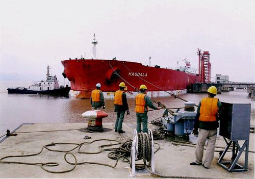 。。 1989年12月31日,隨著一聲驚天動地的炮響,一群拓荒者在這個荒無人煙的地方,開創(chuàng)著岙山島的新紀(jì)元,他們要在這里建造全國最大的商用石油轉(zhuǎn)運(yùn)基地。光陰如梭,1993年2月11日,那是一個激動人心的日子,一艘飄著美國國旗的30萬噸級超級巨型油輪“蘭姆帕斯”號,穩(wěn)穩(wěn)地靠泊在岙山基地25萬噸級碼頭上,宣告全國最大商用石油轉(zhuǎn)運(yùn)基地在東海之濱誕生。