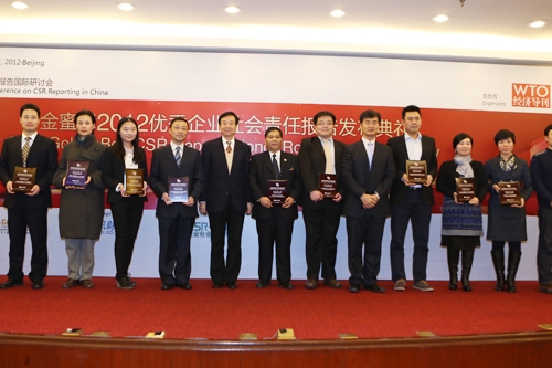 12月4日,在北京召開的第五屆中國(guó)企業(yè)社會(huì)責(zé)任報(bào)告國(guó)際研討會(huì)上,中化集團(tuán)2011年可持續(xù)發(fā)展報(bào)告獲得“金蜜蜂2012優(yōu)秀企業(yè)社會(huì)責(zé)任報(bào)告領(lǐng)袖型企業(yè)”獎(jiǎng)。 研討會(huì)由《WTO經(jīng)濟(jì)導(dǎo)刊》、中國(guó)可持續(xù)發(fā)展工商理事會(huì)共同主辦,以“責(zé)任溝通創(chuàng)造價(jià)值”為主題,會(huì)上還發(fā)布了《金蜜蜂中國(guó)企業(yè)社會(huì)責(zé)任報(bào)告研究2012》。除中化集團(tuán)外,獲得“金蜜蜂領(lǐng)袖型企業(yè)”獎(jiǎng)的企業(yè)還包括中國(guó)石油、神華集團(tuán)、中國(guó)電信等12家企業(yè)。
