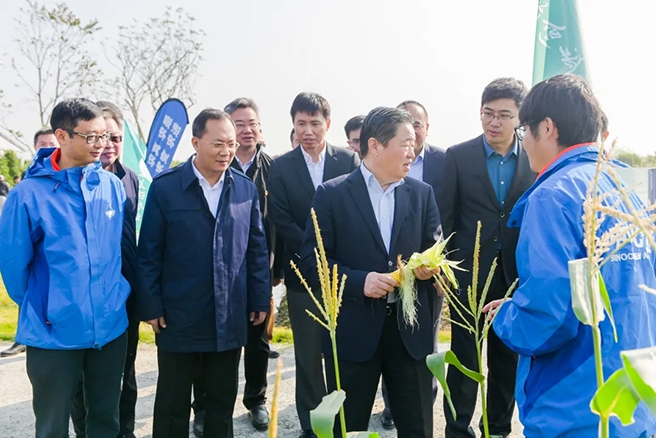 圖為寧高寧在廣州南沙中化現代農業科學城調研期間,深入田間查看玉米生長情況