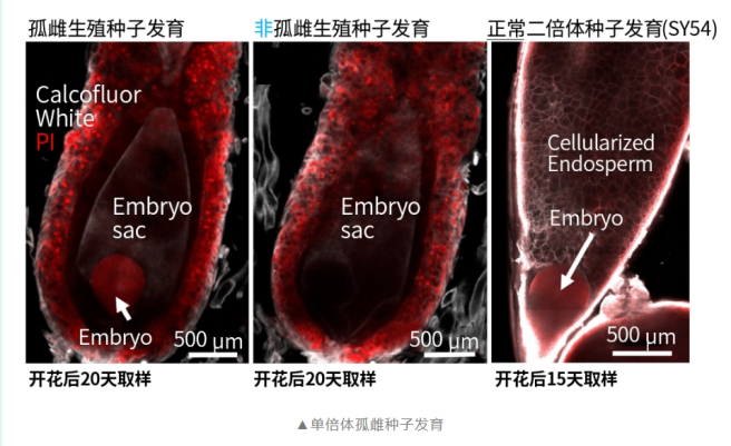 孤雌生殖也稱單性生殖,即卵細胞不經過受精也能發育成正常的單倍型新個體。傳統理論認為,被子植物(具有果實包裹種子等核心特征的植物類群)必須通過精卵結合(形成胚胎)和精細胞與中央細胞結合(形成胚乳)完成繁殖(即,結出種子)。該研究首次證實,在特定遺傳背景下,向日葵卵細胞可繞過受精直接啟動胚胎發育,且無須胚乳支持(實驗中未觀察到胚乳自主發育)——這一發現突破了學界對植物生殖的認知框架。 ?