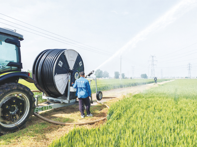 中化農業 MAP 華北大區河南中心農藝師用噴灌機澆灌麥田??