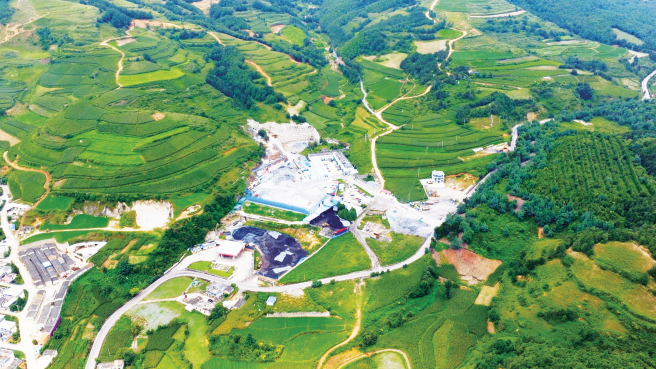 2025年是“綠水青山就是金山銀山”理念提出20周年。中化云龍綠色工廠深入踐行“兩山”理念,面對大宗固廢磷石膏綜合利用這一世界性難題,自主開發磷石膏高差速耦合圓盤造粒、磷石膏兩次轉晶和復合調凝等集成技術,形成120萬噸磷石膏無害化處理及綜合利用能力,全面實現水泥緩凝劑、路基材料、生態修復材料、土壤調理劑等產品的柔性生產,有效助力中國中化“無廢集團”建設。2025年1-5月份,實現磷石膏綜合利用49.17萬噸,綜合利用率100%,為企業高質量發展注入綠色動能。圖為中化云龍沒租哨磷礦,是國家級綠色礦山。