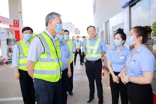 在福建石油所屬泉州市惠安后建加油站檢查調研期間,李凡榮詳細了解油站投資布局、群組改革、油品銷售、安全管理、黨建工作等情況,慰問高溫下堅守崗位的一線員工,對福建石油多年深耕福建成品油市場的工作表示肯定,希望與泉州石化等在閩中化單位協同發展,促進公司的高質量發展,為當地經濟發展和人民幸福多作貢獻。