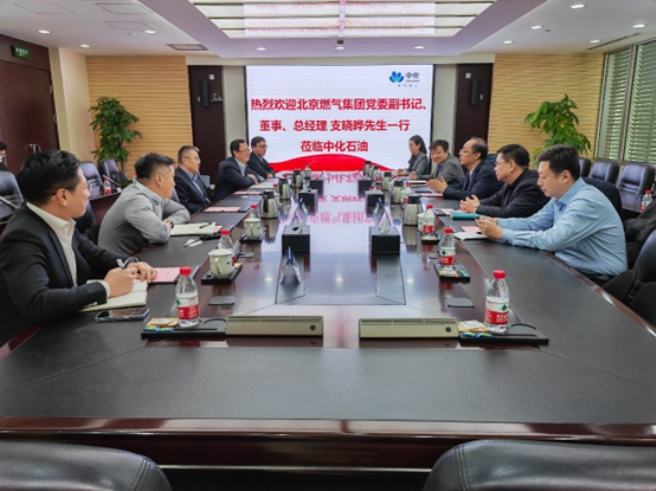 1月17日,中國中化副總經理、黨組成員,中化能源董事長、總經理、黨委書記鐘韌會見來訪的北京燃氣集團總經理、董事、黨委副書記支曉曄一行。