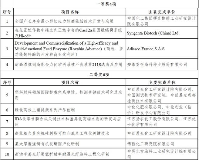 2023年度中國中化科技進(jìn)步獎獲獎項目