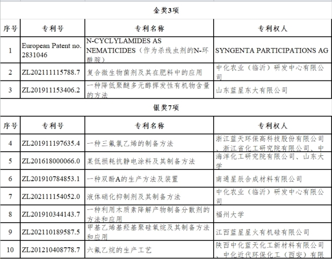 2023年度中國中化專利獎獲獎項目