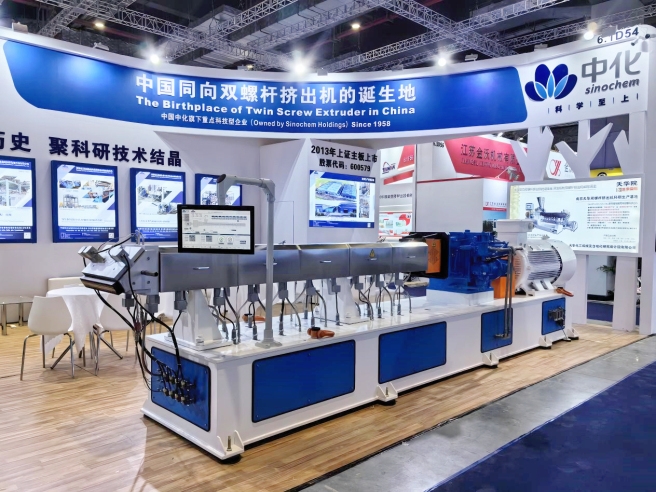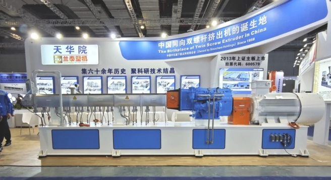 展會(huì)現(xiàn)場(chǎng),天華院還重點(diǎn)展出其創(chuàng)新研發(fā)的聚合物脫揮擠出機(jī)。該設(shè)備利用高效的傳質(zhì)傳熱能力,可廣泛應(yīng)用于聚合反應(yīng)后脫出溶劑、未反應(yīng)單體及低聚物等的工藝過程。