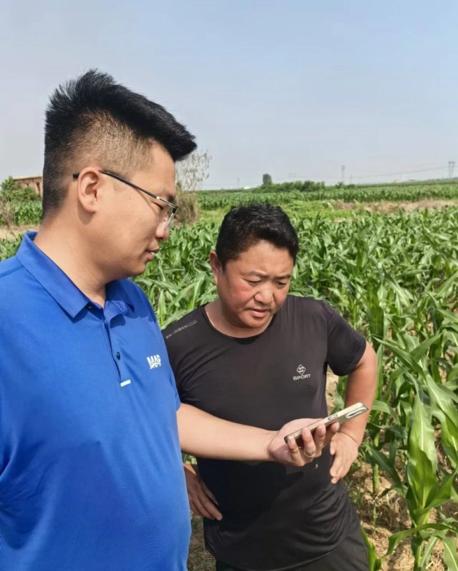 圖片中化農業MAP新橋技術服務中心幫助農戶排澇 伴隨著臺風“格美”的接近,河北石家莊新樂地區玉米受南方銹病和倒伏的風險加大。針對出現病害和倒伏風險的地塊,中化農業MAP石家莊新樂技術服務中心農藝師深入田間地頭,實地查看玉米長勢和病害情況,并為農戶提供針對性的解決方案。