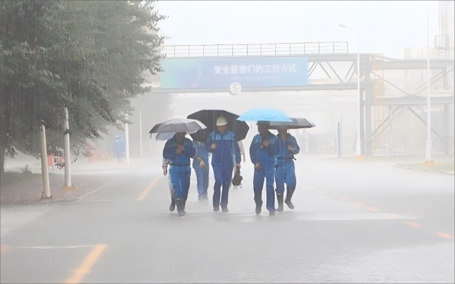 圖片沈陽化工員工冒雨趕往工作崗位