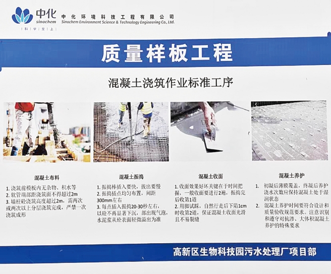 中化環(huán)境:中化環(huán)境制定“質(zhì)量樣板引路、示范先行機(jī)制”準(zhǔn)則,將事后檢查把關(guān)轉(zhuǎn)向事前控制,在施工現(xiàn)場設(shè)置質(zhì)量樣板區(qū)并張貼工序、工藝標(biāo)準(zhǔn)化圖例,為工程質(zhì)量管理建立基準(zhǔn)。