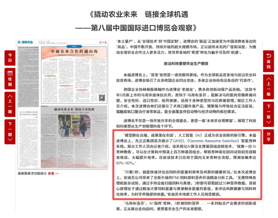 作為央企“引進來”“走出去”的標桿案例,中國中化旗下法國安迪蘇是首家在A股上市的國際性企業,結合中國“人工智能+”的大戰略,安迪蘇帶來了“AI+動物營養”的全新范式。