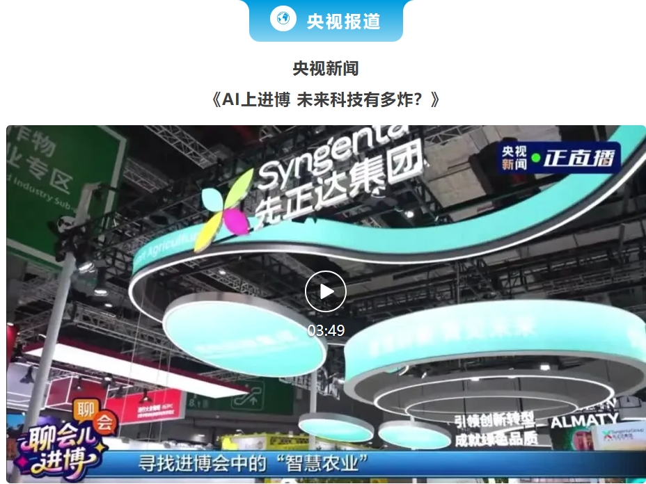 央視新聞記者走進先正達集團展臺,先正達集團中國首席可持續發展官侯育向記者詳細介紹了先正達集團帶來的AI賦能成果,展示了其在育種研發、種植管理及田間監測方面的創新應用,顯著縮短育種周期,實現作物生長的科學管理,并且精準識別作物健康狀況與病蟲害,進一步推動技術與農業的深度融合。