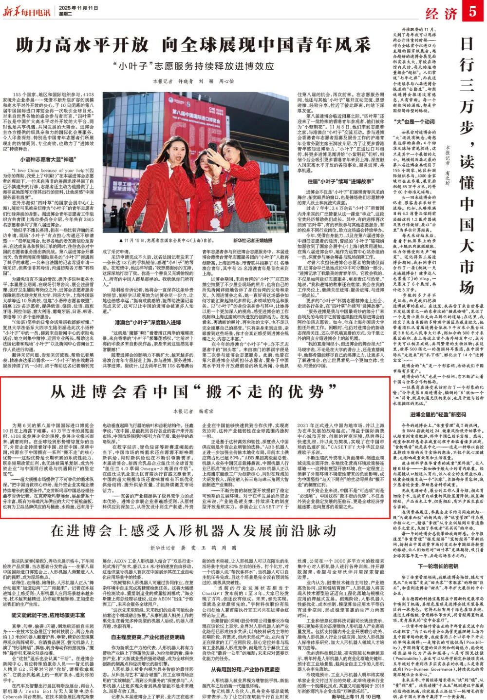 “未來已來”始終是進博會傳遞的鮮明信號。在中國中化旗下先正達集團展臺前,主持人白巖松注意到一款農業機器狗,它能夠自主巡田,為農戶提供精準的種植指導。先正達集團本屆進博會帶來的創新成果讓更多人看到了人工智能技術在農業領域的應用,并對未來新技術的進一步發展充滿期待。