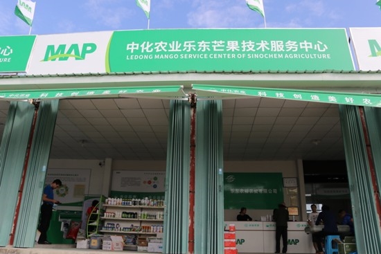 中化農業MAP無人機飛防服務 實際上,上述三位依出場順序,分別代表著收銷渠道、經銷企業、農機企業,他們都屬于中化農業MAP戰略新納入的地方合作伙伴。三位在中化農業海南MAP樂東芒果技術服務中心的交談,反映出芒果種植產業鏈的核心問題:規范化種植標準欠缺,傳統農藝技術有局限,以及由果品品質帶來的議價權問題。 針對芒果經作產業轉型,產業鏈升級,中化農業海南分公司總經理黎傳鋒有著自己的見解:“以海南MAP為排頭兵的中化農業MAP經作要干的大事,就是通過‘標靶’作物撬動整個經作產業鏈的升級。通過選擇當地標靶經作芒果、荔枝、哈密瓜等,建立針對作物導向的經作服務中心。我們要通過MAP技術服務平臺,納入像經銷商、農機企業、收銷平臺這樣的基層終端合作伙伴;通過中化農業海南經作MAP的示范效應,牽頭聯動,建立、示范并倡導行業規范化種植標準的推行普及。治標又治本,促進農戶可持續增產增收,從源頭保證果品質量,把控議價權,帶動整個產業鏈升級。” 農產助銷,全鏈條服務推進中化農業MAP作物品牌建設 身兼農資經銷商和芒果種植大戶雙重身份的三亞樂東農裕農資有限公司總經理陳自然有自己的農資公司和2000畝示范芒果田。 作為中化農業海南MAP最早的合作伙伴之一,陳自然從物流業務做起,發展到全鏈條服務。從中化農資品牌代理做起,通過中化農業海南MAP平臺串聯農機企業,提供無人機植保飛防服務,還做著測土配肥等相關業務。近十年來,陳自然一直緊跟中化農業,現在又跟上了MAP戰略步伐。 記者看到,中化農業海南MAP樂東芒果技術服務中心的銘牌掛在陳自然的農資店里。“中化農業是智慧謀劃,我們是有效執行。MAP經作戰略就好比子彈,我們作為海南MAP在基層一線的重要武器,一定協作中化農業打好經作產業鏈升級的關鍵一仗。” 以標靶作物為導向,農戶為中心,依據中化農業海南經作MAP戰略要求,樂東芒果技術服務中心配套建成了芒果助銷中心。通過物流服務、電商服務、采購服務,以及果品分級、果品保鮮、果品包裝等幫助農戶實現“田地對接餐桌”的快捷銷售目標。