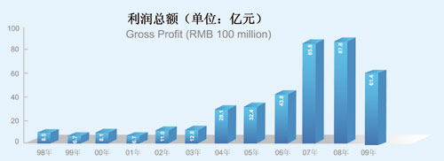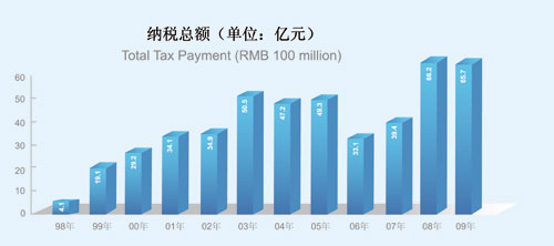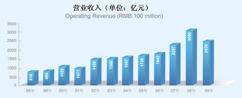 自國資委2004年對中央企業實行經營業績考核以來,已連續五次被評為A級,以良好的業績實現了對股東的承諾。1998年至2009年,公司累計實現利潤總額393.1億元,累計納稅總額472.8億元。