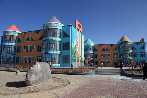 該幼兒園于2011年5月動工建設(shè),總投資1200余萬元,其中中化集團(tuán)援建資金270萬元,浙江省援青指揮部援建資金300萬元,紹興市援建資金180萬元,其余由行委財政自籌。占地面積16500平方米,建筑面積3548.64平方米,可容納360名適齡幼兒入學(xué)。幼兒園室內(nèi)外設(shè)置、設(shè)備均按照標(biāo)準(zhǔn)化幼兒園配備,共有幼兒活動室、午休室、舞蹈室、玩具室、啟蒙教育室、教室等功能室12間,為孩子們提供了全省一流的學(xué)習(xí)環(huán)境。