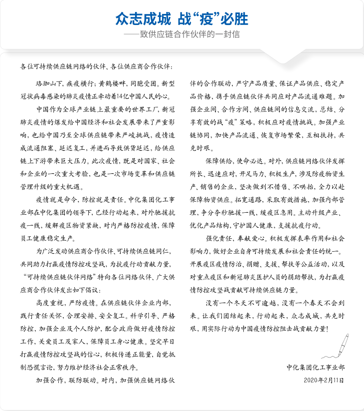 并肩戰“疫”,中化集團發出兩大倡議文/ |