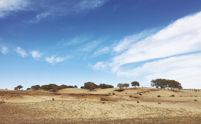 白樺 去年十一黃金周,我和朋友們組了一支越野車隊,共同穿越草原無人區。行程已結束很久,但塞外草原的荒涼、沙漠湖泊的靜逸,是那樣清晰地印刻在我腦海之中,久久無法忘卻。 烏蘭布統草原 烏蘭布統草原是木蘭圍場的一部分,這里是丘陵與平原的交錯地帶,森林和草原有機結合,草甸子雖不是一望無際,但也廣闊遼遠。草甸邊緣的漫坡長滿了樺樹,鉆進去,枝葉遮云蔽日,不知林子到底有多大。我們的草原無人區穿越之行就從這里開始了。 33輛越野車浩浩蕩蕩開出紅山軍馬場沒多久,車隊就離開公路,轉入無人區。越野車駛過坑坑洼洼的土路,揚起滾滾煙塵。 車隊休息時,站在一處緩坡上,目之所及只有連綿起伏的草原,疏密相間的樹林。深秋時節,草甸已變枯黃,大地猶如鋪了一條黃金毯。由近及遠,毯子上點綴著各色樹木,五彩斑斕,層次分明。駐足在這昔日的古戰場,獵獵北風在耳邊呼嘯,眼前仿佛出現康熙大帝指揮將領們大戰噶爾丹的場面,金戈鐵馬,壯士悲歌,心中不由生出許多感慨。 渾善達克沙地 渾善達克沙地東起內蒙古克什克騰旗,西至錫林郭勒蘇尼特旗,總面積2.8萬平方公里,是距北京最近的沙源。此次穿越,我們僅走了渾善達克沙地的一個邊緣地帶,但其獨特的風貌已然讓人無法忘懷。 與想象中的沙漠不同,在這里看不到一望無際、連綿不斷的黃色沙山,映入眼簾的是稀疏的沙榆樹、白樺樹等,它們搖曳在沙地中,與低矮的灌木叢相互映襯,構成了渾善達克沙地生機勃勃的獨特風貌。 乍看這里與烏蘭布統草原的地貌似乎差別不大,若不是在進入沙地前,車隊要求所有車輛掛四驅,我們都完全看不出這就是渾善達克沙地。進入沒多久,沙地就開始發威。一輛越野車陷入沙坑里,任你怎么推,怎么踩油門,只見車輪空轉,車子絲毫不動,最后只能靠其它車輛合力把它拖了出來。領教了沙地的威力后,車隊開始走得小心翼翼。 沙地中有很多沙棘樹,半透明的小紅果掛滿樹梢,引得我們口水直流,摘幾顆嘗了嘗,味道酸酸甜甜,可以和山楂媲美。 據說渾善達克沙地是鳥類的天堂,每年會有大批候鳥來到這里棲息,可我們一路上除了看到幾只喜鵲和烏鴉,幾乎沒有看到別的鳥類。司機師傅告訴我們,由于沙地水源減少,又有人捕獵,鳥就變少了。不過現在政府采取了一系列保護措施,使沙地生態環境整體上有所改善,相信不久的將來,渾善達克沙地會重新成為鳥兒們的樂園。