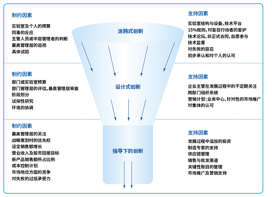 先導(dǎo)用戶曲線 為此,3M公司在研發(fā)中心和各技術(shù)中心內(nèi)特別建立了3M客戶創(chuàng)新中心。3M客戶創(chuàng)新中心又被譽(yù)為3M的“創(chuàng)新?lián)u籃”,集中展示了3M的核心科技和多元化市場應(yīng)用,通過新奇有趣的互動體驗帶領(lǐng)每位用戶進(jìn)入3M的創(chuàng)新世界。 二是逆向戰(zhàn)略計劃法。 不同于一般企業(yè)采用的問題導(dǎo)向或需求導(dǎo)向思路,逆向戰(zhàn)略計劃是指一種“先有解決問題的辦法,后有問題應(yīng)用的市場”的創(chuàng)新模式。 3M公司很多創(chuàng)新和發(fā)明都是圍繞既有技術(shù)成果交叉展開的。具體做法是研究人員先圍繞一個核心技術(shù)發(fā)散思考,挑選出一個具有發(fā)展?jié)摿Φ男路种Ъ夹g(shù)進(jìn)行研究,先解決技術(shù)問題,然后再為這種技術(shù)尋找可以應(yīng)用的市場,從而開創(chuàng)出一種新的產(chǎn)業(yè)。所謂的逆向,其實就是由技術(shù)來引導(dǎo)市場。 逆向戰(zhàn)略計劃法將創(chuàng)新管理分成了幾個不同階段,包括涂鴉式創(chuàng)新、設(shè)計式創(chuàng)新和指導(dǎo)下的創(chuàng)新,三個創(chuàng)新方式形成漏斗式的分段模式。 一是涂鴉式創(chuàng)新,指天馬行空地提出一些新構(gòu)想,甚至可能是雜亂無章的。 二是設(shè)計式創(chuàng)新,大家一起討論各種新想法,某一想法得到一致認(rèn)可后,集中各方力量進(jìn)入深入研究,轉(zhuǎn)化為具有一定可行性的項目構(gòu)思。 三是指導(dǎo)下的創(chuàng)新,通過在不同階段逐步增加人力和資金投入,最終完善項目構(gòu)思,開始投入正式的研發(fā)試驗。 3M公司創(chuàng)新文化 3M的創(chuàng)新實踐根植于鼓勵創(chuàng)新、允許失敗、尊重員工的創(chuàng)新文化之中。 在80年前訂立的宗旨中,3M公司就明確提出:決不隨便扼殺任何有關(guān)新產(chǎn)品的構(gòu)想。3M公司永遠(yuǎn)鼓勵和支持員工自由表達(dá)自己的觀點,鼓勵每一個人獨立而不受干預(yù)地開發(fā)新產(chǎn)品。 3M認(rèn)為,公司是不能命令人們有創(chuàng)造力的,它所能做的只是努力營造一個有利于創(chuàng)新的寬容、自由和安全的氛圍。因此,公司提倡寬容對待員工的創(chuàng)新活動,給予員工更多的自由和安全感。員工可以自由地在公司宣傳新思想、新觀點和對某產(chǎn)品的新想法,絕對不用擔(dān)心“因言獲罪”;公司會通過各種途徑向員工證明開創(chuàng)新產(chǎn)業(yè)是完全可能取得成功的,一旦創(chuàng)新成功,員工就會得到公司的承認(rèn)和獎勵。 在研究開發(fā)部門,有兩個最具特色的不成文規(guī)定:“15%法則”和“私釀酒”。 “15%法則”最初是允許公司的技術(shù)人員可以有15%的時間自由進(jìn)行規(guī)定任務(wù)以外的研究,而不用考慮這些方案是否直接有利于公司。員工有了好的構(gòu)想,他可以直接從技術(shù)、制造、營銷部門中尋找志同道合者,組成靈活的創(chuàng)新小組進(jìn)行產(chǎn)品設(shè)計,公司可以給予一定限度的資助,直至使之批量化生產(chǎn)及推向市場。一旦新產(chǎn)品獲得成功,參與新產(chǎn)品研發(fā)關(guān)鍵人員的職務(wù)與報酬就會自動提高。現(xiàn)如今,“15%法則”有了進(jìn)一步發(fā)展,這個“15%”的比例變得不再固定,一些員工自由研發(fā)的時間或許已經(jīng)超過了15%。15%法則得到了谷歌等公司的認(rèn)同和學(xué)習(xí)。 “私釀酒”的含義則是隱瞞上司,秘密進(jìn)行研究。在一些公司里,無需對公司及上司惟命是從的觀念被認(rèn)為是“大逆不道”,甚至需要冒被“炒魷魚”的風(fēng)險。而在3M,這種精神卻受到稱贊。3M的管理人員也有義務(wù)“善意地視而不見”,只要該員工本職工作完成就行。 研究人員正是利用這兩項法則,私下進(jìn)行著連管理層也無法完全掌握的新商品開發(fā),一旦取得一定成果,他們就可以向上司展開推銷,各種各樣的創(chuàng)新商品因此而具體化、商品化。為了使這兩個法則長期延續(xù),不致因為領(lǐng)導(dǎo)更換而被改變,公司刻意不將它們列入規(guī)章制度的明文規(guī)定,使得這兩條“不成文的規(guī)定”得以保持至今,并持續(xù)為3M的發(fā)展帶來不竭的創(chuàng)新動力。 此外,3M公司的高級管理層高度重視知識交流,形成了良好的知識交流機(jī)制,比如集體協(xié)作氛圍、經(jīng)常性聯(lián)絡(luò)制度和員工們的主動精神等。公司每天都會產(chǎn)生大量新想法和技術(shù),讓大家聚在一起交流不僅可以產(chǎn)生意想不到的效果,而且便于建立彼此之間的良好關(guān)系,為將來的項目合作打下基礎(chǔ)。如今,3M公司在全球擁有上百個分公司和研發(fā)中心,通過電話會議、視頻會議等遠(yuǎn)程方式交流信息,共享知識。 還有一種知識交流機(jī)制是技術(shù)論壇。技術(shù)論壇是由公司員工志愿發(fā)起,具有一定管理框架的民間組織。作為3M公司重要的知識交流和共享平臺,工作人員通過技術(shù)論壇,不僅交流了思想、碰撞了火花,感受到相互信任、交流帶來的幸福,更建立起一個和諧、進(jìn)步的文化氛圍,并最終促進(jìn)提升企業(yè)整體的技術(shù)創(chuàng)新精神。 3M作為世界一流的創(chuàng)新型企業(yè),100多年來開發(fā)過的口罩、磁帶、投影儀、錄像帶、即時貼等近七萬種產(chǎn)品,融入人們工作生