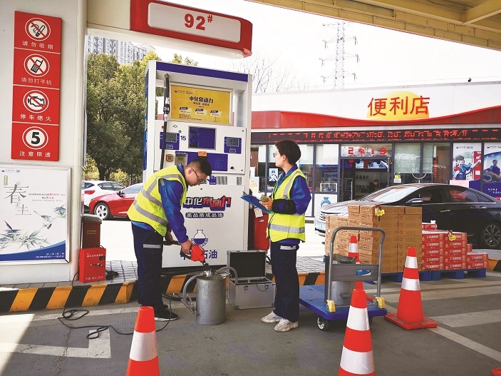 加油站員工使用油氣回收系統快速檢測儀器自主檢測油槍氣液比