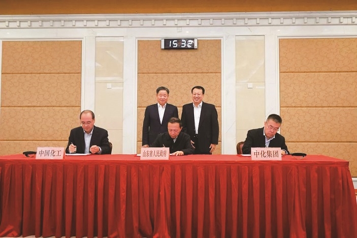 中化集團、中國化工與山東省政府簽署戰略合作協議 11月2日,中化集團董事長、中國化工董事長寧高寧率兩家企業代表團赴山東濟南,出席兩化與山東省戰略合作協議簽約儀式。根據協議,中化集團、中國化工將山東省作為重要戰略區域,在能源、高端化工(新材料)、現代農業(農化)、城市運營、現代金融服務、環境保護等重點領域開展全方位、多層次、寬領域務實合作。此外,中化資本投資公司與山東財金集團、山東國惠基金、聊城安泰城投公司簽署《山東省新動能中化環保產業投資母基金合作框架協議》。 期間,寧高寧一行會見山東省委書記劉家義,山東省委副書記、省長龔正及山東省委常委、濟南市委書記王忠林,就兩化在魯投資發展、與山東加強合作等相關議題進行深入探討。