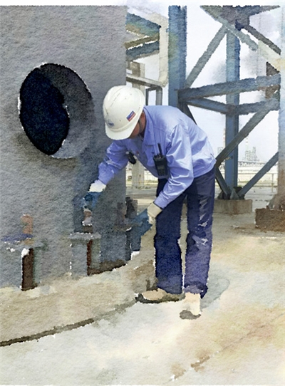 將泉州石化靜謐的夜晚用來(lái)檢修再合適不過(guò)了:用心聽(tīng)、細(xì)心查,看一顆顆螺栓是否緊固,看黃油是否涂抹均勻。 但是遇到火炬筒體又大又長(zhǎng)的螺栓,該怎樣維護(hù)保養(yǎng)呢?火炬的重要性對(duì)于大型煉廠來(lái)說(shuō)不言而喻,泉化的三個(gè)火炬筒體關(guān)系到全廠的裝置。之前,火炬筒體螺栓并沒(méi)有恰當(dāng)?shù)谋pB(yǎng)措施,存在著生銹、腐蝕的風(fēng)險(xiǎn),最終可能造成筒體底座移位,甚至倒塌。 儲(chǔ)運(yùn)三班的劉勇班長(zhǎng)適時(shí)提出在大螺栓上抹黃油,再用空礦泉水瓶套在上面,以起到維護(hù)保養(yǎng)螺栓的作用。這個(gè)方法在經(jīng)過(guò)泉化派駐儲(chǔ)運(yùn)的HSE專員的安全評(píng)估后得以運(yùn)用。一個(gè)小小的空礦泉水瓶,竟也發(fā)揮出巨大作用,為泉化安全生產(chǎn)保駕護(hù)航。 許驥/泉州石化質(zhì)檢中心 楊川/泉州石化儲(chǔ)運(yùn)運(yùn)行部