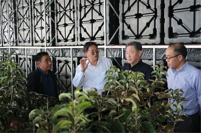 寧高寧聽取林西縣副縣長、中化扶貧干部胡才志匯報(bào) 當(dāng)天中午,寧高寧一行驅(qū)車前往林西縣,對中化集團(tuán)幫扶林西縣十二吐村設(shè)施農(nóng)業(yè)項(xiàng)目和東山扶貧產(chǎn)業(yè)園高標(biāo)準(zhǔn)溫室項(xiàng)目進(jìn)行深入考察。中化集團(tuán)投資建設(shè)的水蓄熱內(nèi)外雙保溫裝配式智能溫室位于東山生態(tài)扶貧產(chǎn)業(yè)園核心地段,用于花卉栽培展示及水果、蔬菜種植等高效益行業(yè),租金收入用于支持當(dāng)?shù)亟n立卡貧困戶增收。在聽取林西縣副縣長、中化扶貧干部胡才志和十二吐鄉(xiāng)黨委書記謝艷麗的情況介紹后,寧高寧走進(jìn)日光溫室查看種植作物生長情況,仔細(xì)詢問了暖棚設(shè)施項(xiàng)目投入產(chǎn)出情況及帶動(dòng)農(nóng)民增收脫貧的效果。