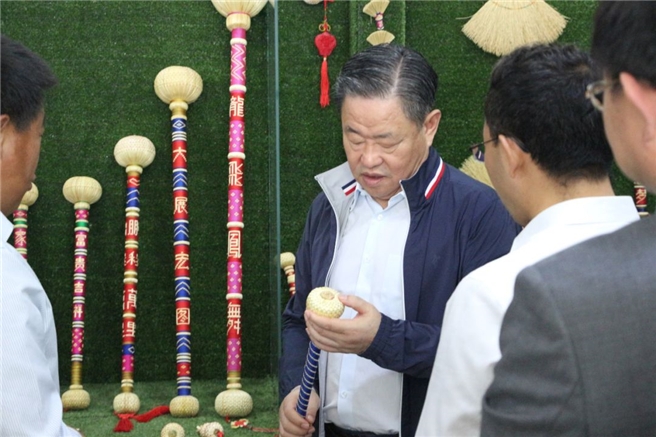 寧高寧考察中化幫扶的笤帚苗產(chǎn)業(yè)扶貧項(xiàng)目 結(jié)束在林西縣的調(diào)研,寧高寧一行當(dāng)晚趕赴阿旗。9月27日上午,寧高寧首先來到先鋒鄉(xiāng)調(diào)研2018年由中化招商引入技術(shù)并投資建成的種、研、產(chǎn)、銷一體化笤帚苗加工產(chǎn)業(yè)扶貧項(xiàng)目,該項(xiàng)目主要發(fā)展旱作農(nóng)業(yè),笤帚苗種植規(guī)模超過6000畝,采用合作社+農(nóng)戶模式帶動(dòng)群眾種植和務(wù)工。寧高寧在聽取阿旗旗委常委、副旗長、中化扶貧干部呂海濤及先鋒鄉(xiāng)黨委書記楊立錚的介紹后,步入笤帚苗產(chǎn)品加工車間,饒有興致地了解具有濃郁民族特色的笤帚苗手工藝產(chǎn)品。寧高寧指出,笤帚苗是個(gè)很有發(fā)展的產(chǎn)業(yè)項(xiàng)目,在生產(chǎn)常規(guī)產(chǎn)品并獲得市場認(rèn)可后,應(yīng)尋求機(jī)會(huì)引入時(shí)尚設(shè)計(jì)元素提升手工藝產(chǎn)品的附加價(jià)值。