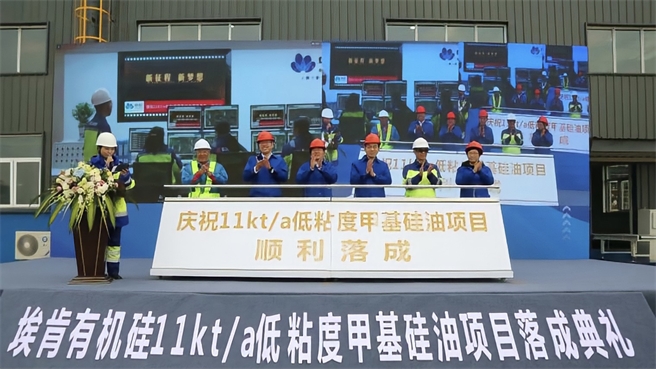 Bluestar Elkem Silicones announced the official opening of its new low viscosity methyl silicone oil production workshop at a launch ceremony in east China's Jiangxi Province in December 2021. Elkem Silicones also signed a strategic deal with major fabric material manufacturers in the industry during the ceremony. Located in Bluestar Elkem Silicones (Xinghuo Silicones), the new workshop adopts self-developed technology with independent intellectual property rights. It aims to expand the supply capacity for the world's growing personal care market and the Asia Pacific region, the world's largest textile and leather market, as well as help clients solve supply chain problems, address challenges in sustainable development, enhance product innovation and boost their growth rate. The newly-opened workshop is an important step for Elkem Silicones to better implement China's development strategy among overseas enterprises as well as expand the downstream businesses, so as to enhance coordinated development of upstream and downstream businesses and ensure that Elkem Silicones becomes the market leader in the production of low viscosity methyl silicone oil. |