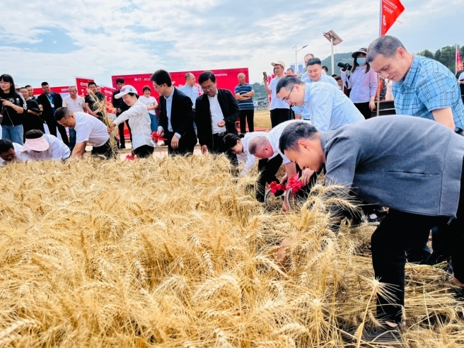 Lately, MAP Grain Crops BU Sichuan organized the “Bumper Wheat Harvest ” Distillery Wheat Observation Meeting and Wuliangye MAP Grain Base Yield Measurement Meeting, along with a harvesting ceremony. The Wuliangye MAP Grain Base is supported by the MAP Grain Crops BU Sichuan team, providing a complete industry chain solution and comprehensive technical services. It aims to create a customized “seeding, harvesting, storage, transportation, and delivery” service system, assisting Wuliangye in achieving full control over the quality system throughout the entire life cycle of the product, starting from a single seed.