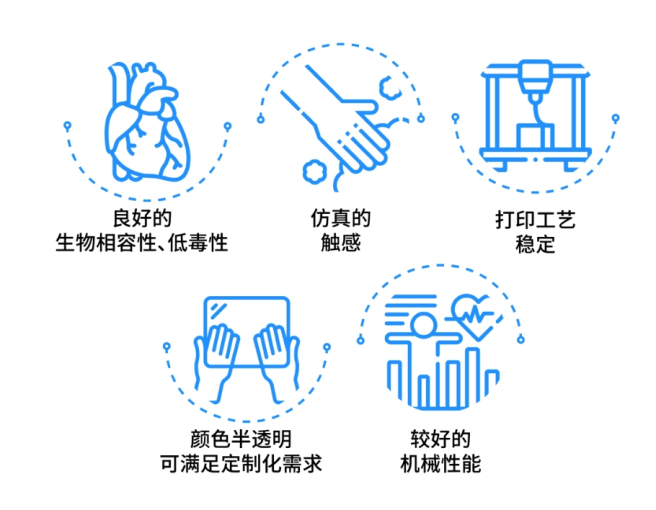藍(lán)星埃肯在3D打印有機(jī)硅材料領(lǐng)域具有豐富經(jīng)驗(yàn),其為3D打印量身定制的AMSIL?系列材料已經(jīng)用于單噴頭和雙噴頭擠出3D打印機(jī)上,比如:★適用于單組分材料的AMSIL? 20 100系列、多組分材料的AMSIL? 20 500系列,含為汽車(chē)、設(shè)備、電子等各種行業(yè)設(shè)計(jì)的產(chǎn)品配方;★AMSIL? SILBIONE? 系列,可結(jié)合3D打印幫助醫(yī)護(hù)人員提供個(gè)性化治療方案。其中,AMSIL? SILBIONE? 24503具有仿真皮膚的觸感和柔軟度,且耐受細(xì)菌、耐消毒。