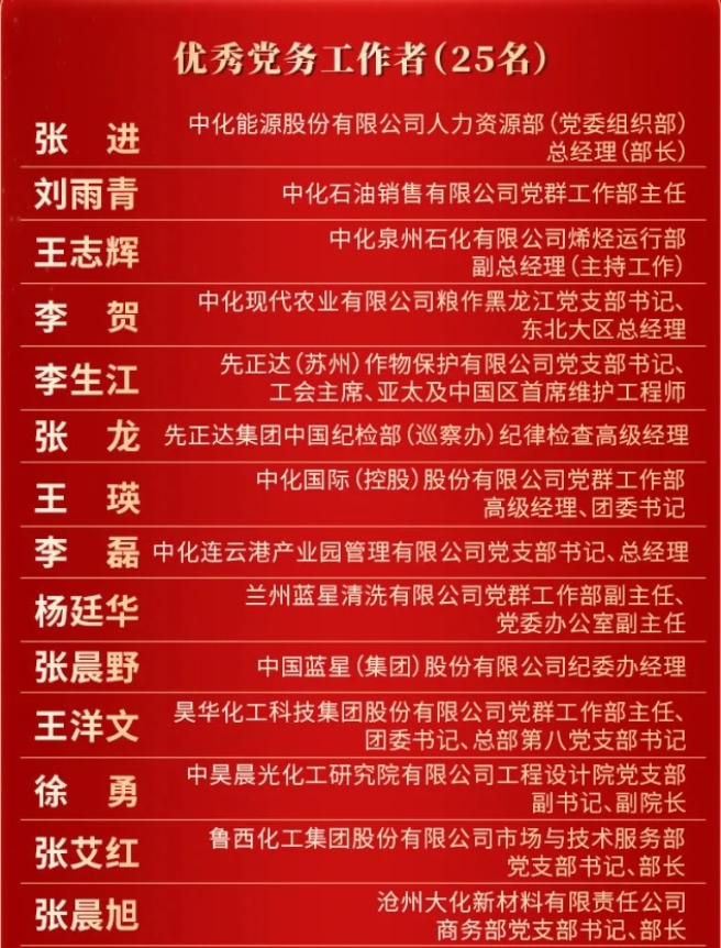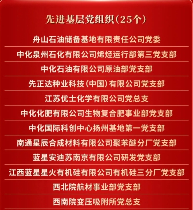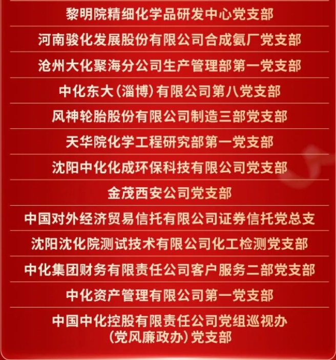 公司各級黨組織和廣大黨員要以先進典型為榜樣,堅持不懈用習近平新時代中國特色社會主義思想凝心鑄魂,堅定理想信念,胸懷“國之大者”,勇當強國興企時代先鋒,不斷增強核心功能、提高核心競爭力,發揮科技創新、產業控制、安全支撐作用,推動改革發展,奮力建設世界一流綜合性化工企業,切實在中國式現代化的偉大歷史進程中貢獻中國中化力量,以更加優異的成績慶祝中國共產黨成立103周年和中華人民共和國成立75周年。